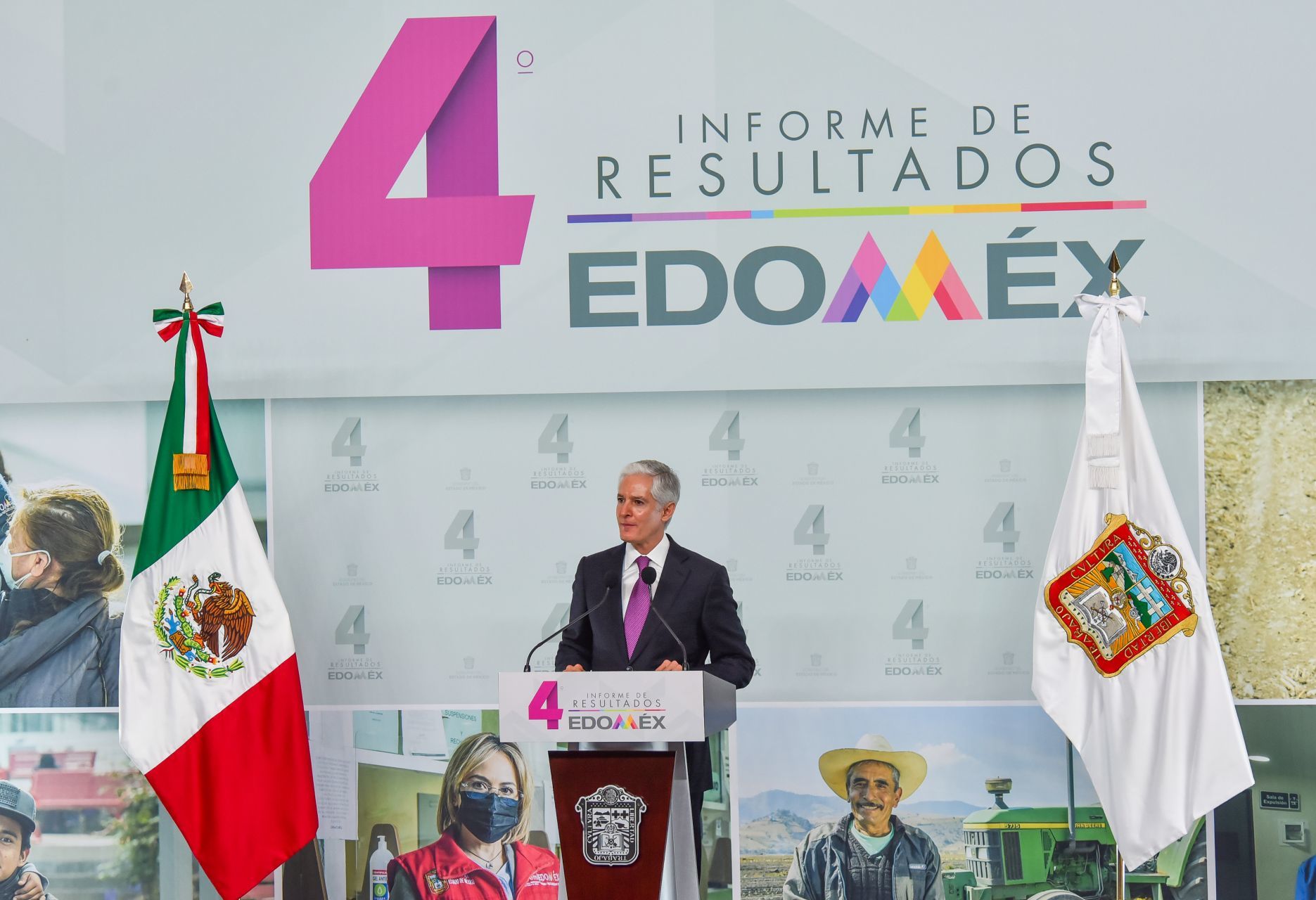 El Cuarto Informe de Alfredo del Mazo Maza tuvo lugar el pasado 20 de septiembre en el Palacio de Gobierno. Lo ahí expuesto por el mandatario mexiquense puede ser consultado en el siguiente enlace: https://resultadosdelmazo.edomex.gob.mx/