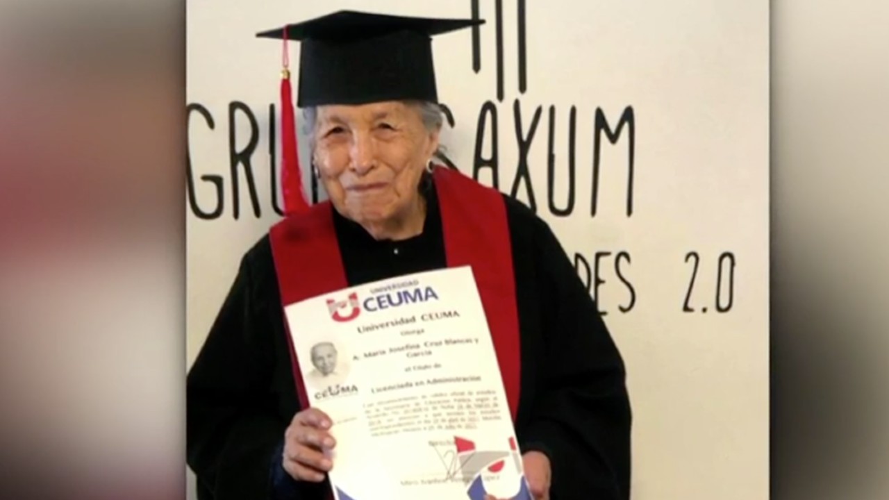 Doña Josefina Cruz Blancas y García, a sus 93 años, obtuvo el título como licenciada en Administración de Empresas en la Universidad CEUMA en Querétaro.