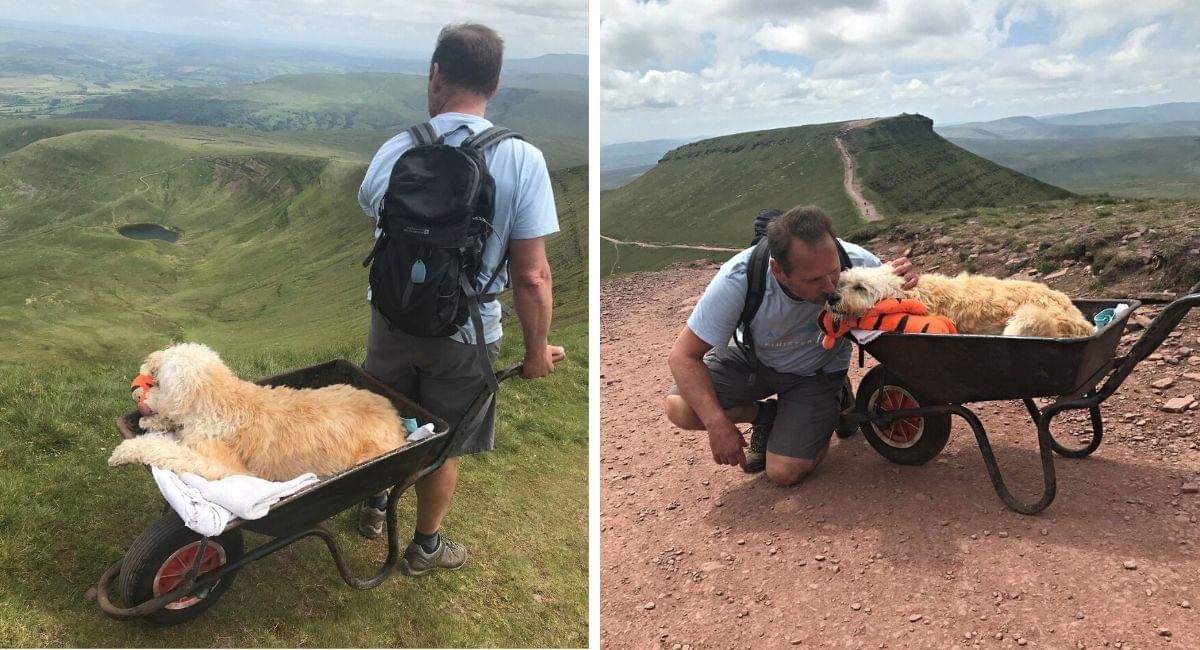 Carlos usó esa carretilla para subir con Monty al lugar más especial de ambos, el monte Pen y Fan. Cuando Monty comprendió que se irían de paseo, no pudo ocultar su gran felicidad. El último viaje junto tendría un matiz de felicidad.