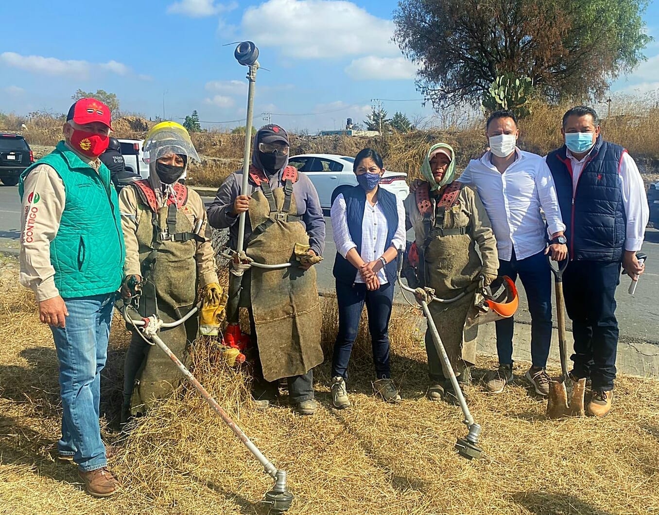 La presidenta municipal Karla Leticia Fiesco García encabezó, junto al líder sindical, esta jornada que se realizó en 19 puntos del territorio izcallense, desde los 13 pueblos y las principales avenidas de la cabecera municipal, con el propósito de limpiar calles, podar césped y árboles, entre otras acciones, y así ofrecer una imagen digna de Cuautitlán Izcalli.