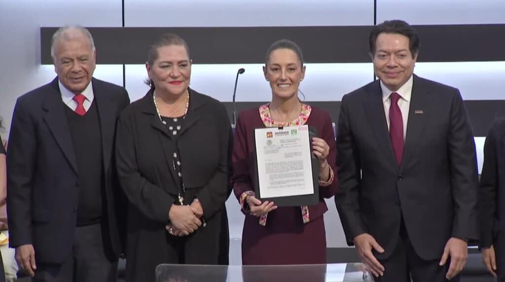 Después de registrarse como candidata presidencial de la coalición Morena-PT-PVEM, Claudia Sheinbaum llamó “falsos e hipócritas” a los opositores que hoy se concentraron en el Zócalo de la Ciudad de México en “defensa de la democracia”.
