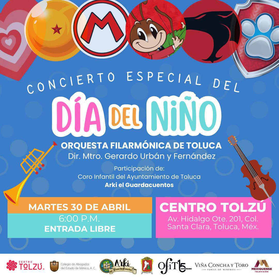 La Orquesta Filarmónica de Toluca (OFiT) celebrará a los niños en su día con un divertido concierto especial el martes 30 de abril a las 18:00 horas en el Centro Tolzú. La entrada es libre y gratuita.