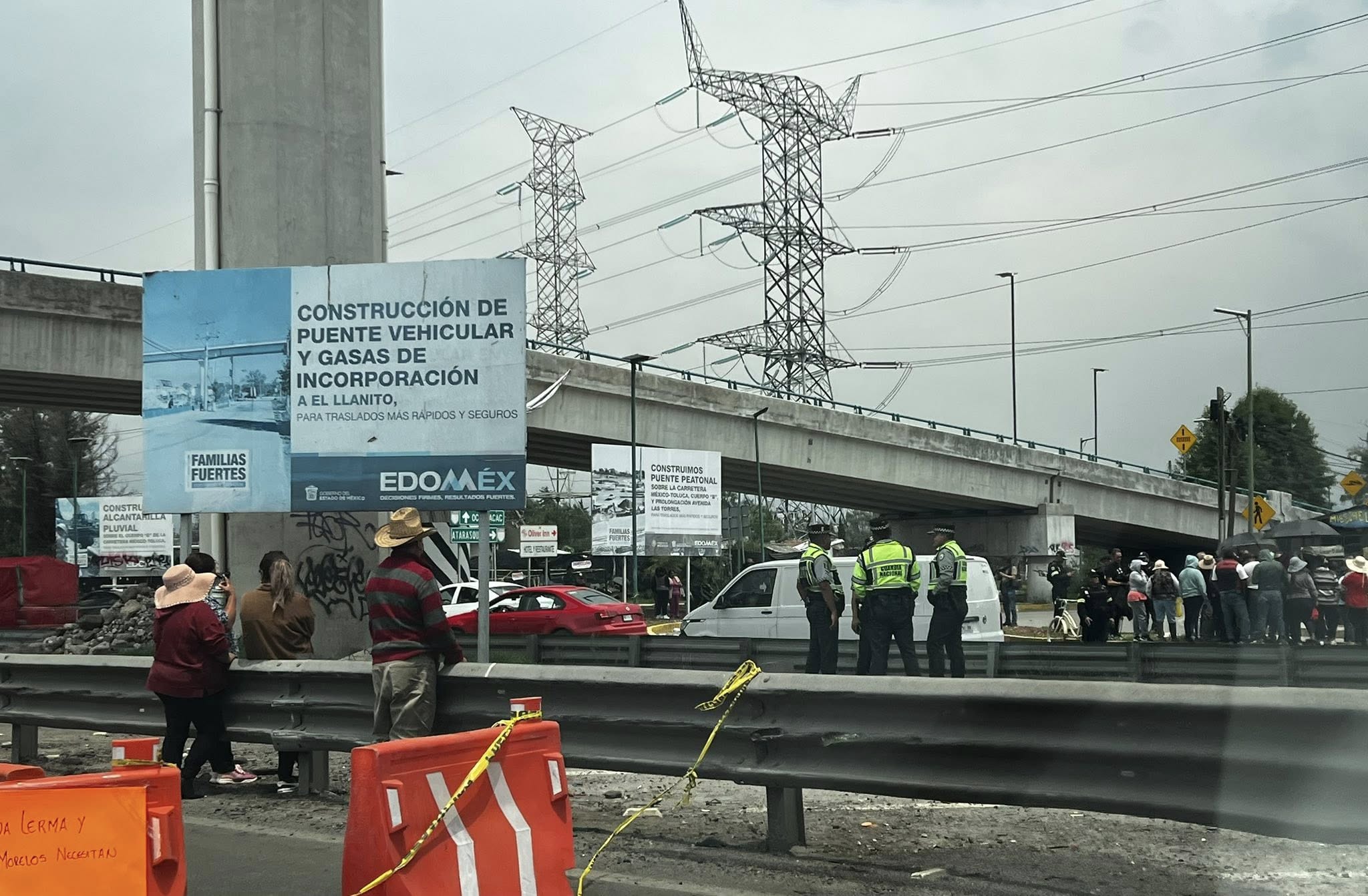 “Necesitamos una solución ya”, decía una de las pancartas colocadas sobre las vallas naranjas que bloquearon el paso vehicular, generando tráfico lento en uno de los tramos más transitados de la zona metropolitana de Toluca.