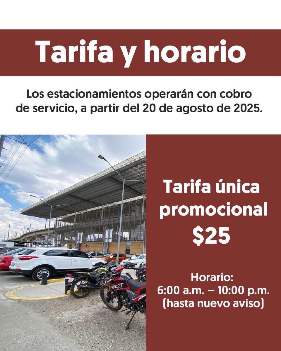 De acuerdo con la información oficial, el costo inicial será de $25 pesos en tarifa única promocional, con tiempo libre. Esto significa que los usuarios podrán dejar su vehículo todo el día sin pagar cargos adicionales.