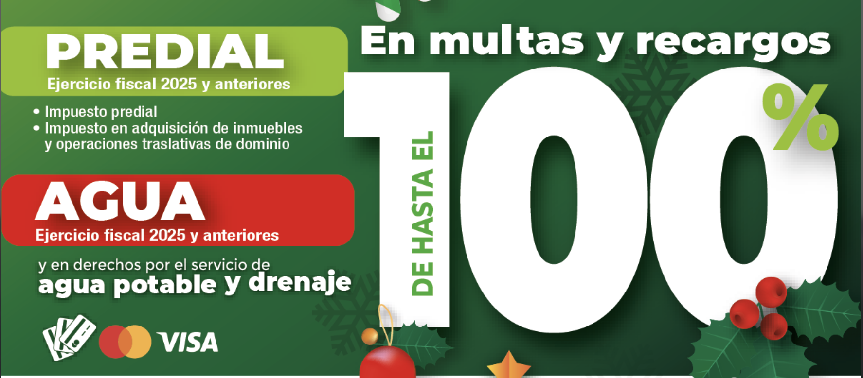 - Agua: Aplicable al ejercicio fiscal 2025 y anteriores, así como en derechos por el servicio de agua potable y drenaje.